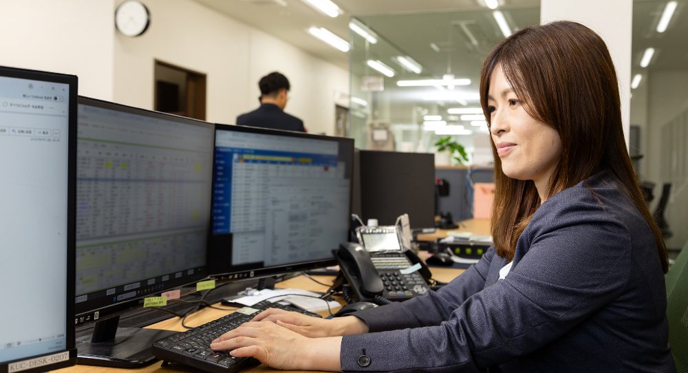 前職ではコールセンターや建設業など、まったく違う分野で働いていました。事務職を希望してハローワークで見つけた求人が、九州運輸センターの営業事務。仕事内容を聞いて、「電話応対の経験が活かせるかもしれない」と思い応募しました。